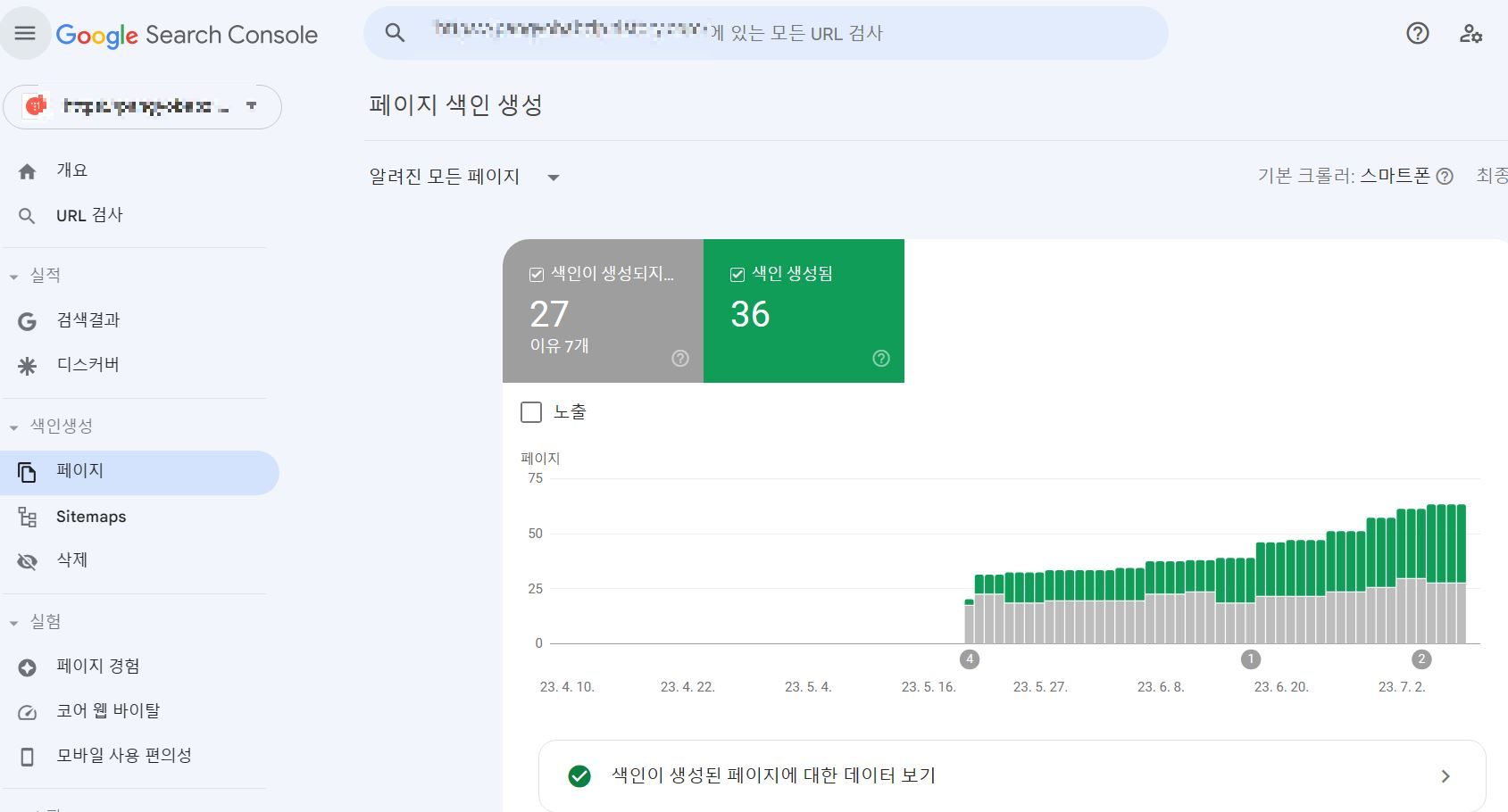 내 블로그와 연동된 구글 서치 콘솔에서 내 블로그의 글 상태를 확인할 수 있는데요,